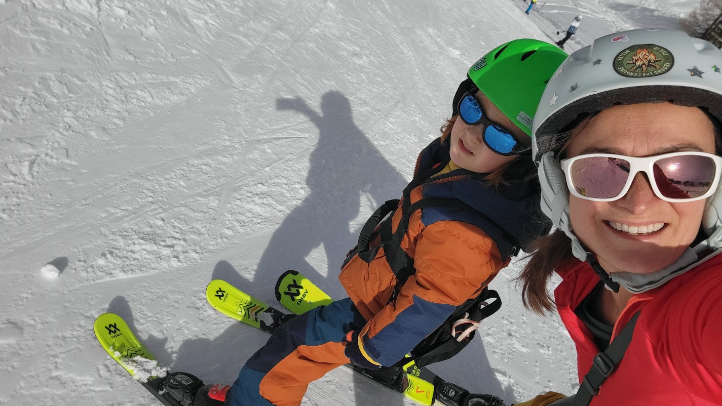 Începem ziua de schi cu un hike, tras sania, stat la coadă la închirieri. Daaar totul iese bine, iar Victor primește întâmplător schiuri ca ale mele. Nițeluș mai mici. Hihi! Oricum a reacționat surprinzător de bine când a aflat că n-are tot echipamentul.
