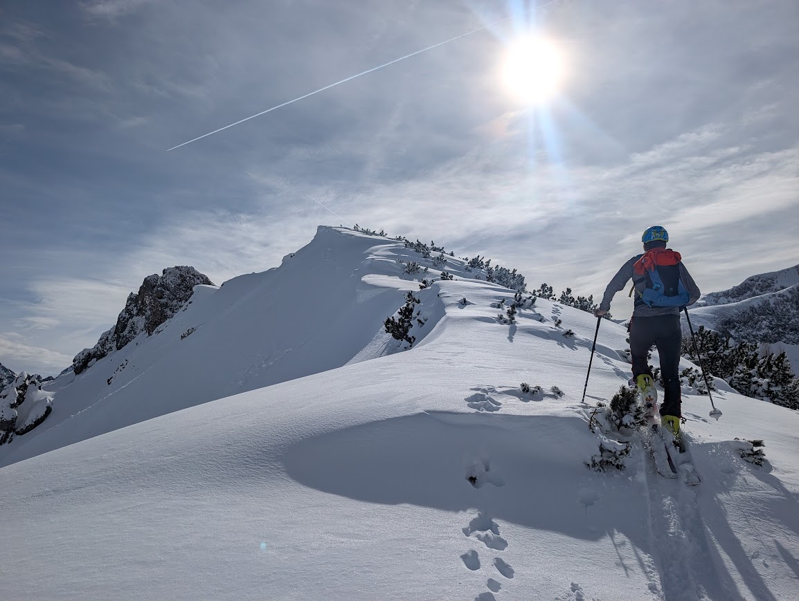 Ștefan merge cu Dani la un schi de tură. E pericol mare de avalanșe, dar mă asigură că stau cuminți 🙂 Lilly o ia la pas spre cabana de pe creastă.